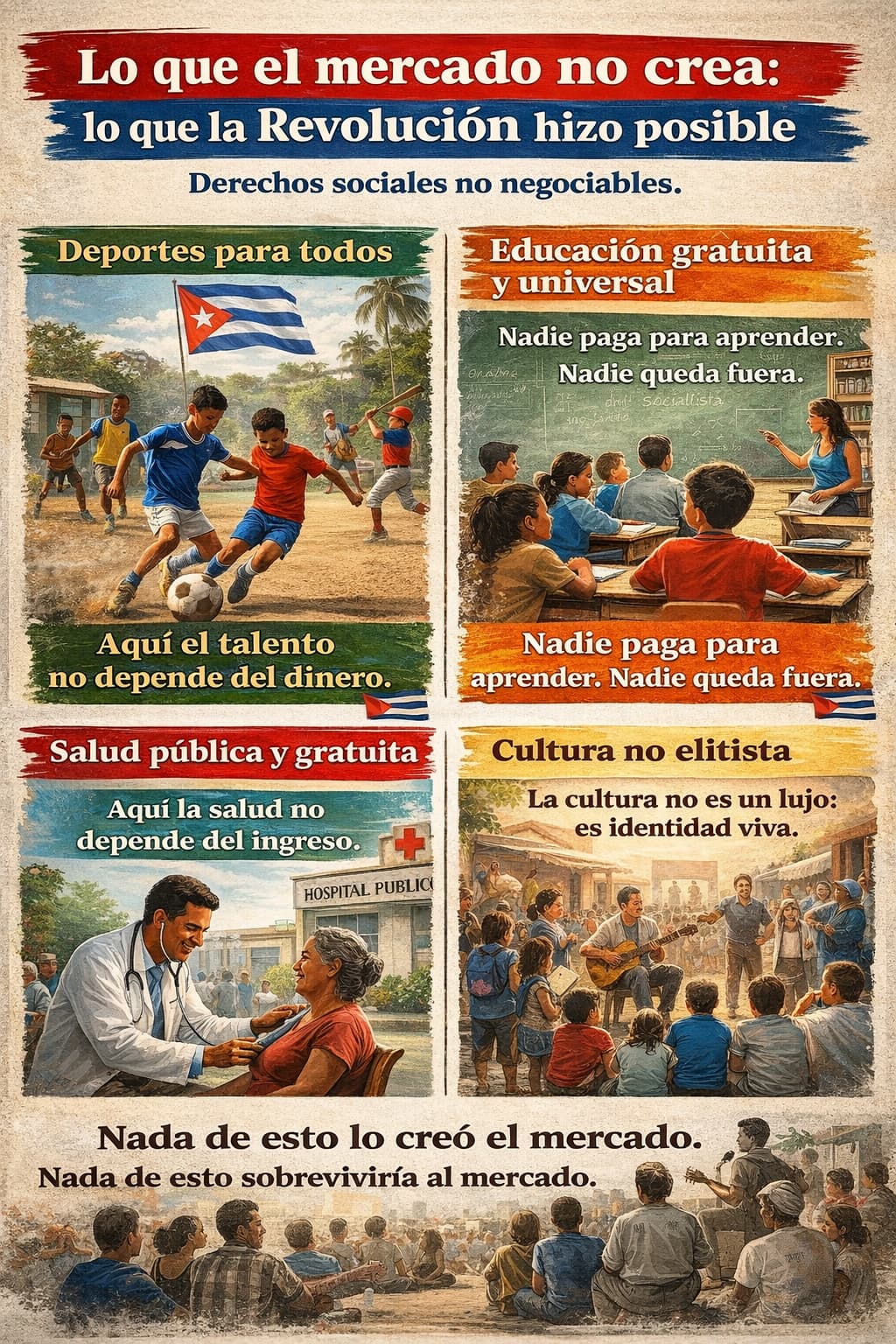 En los últimos tiempos ha comenzado a circular un discurso aparentemente moderado, pedagógico y conciliador que propone para Cuba una fórmula seductora: el llamado “capitalismo social”. Bajo una estética amable, plagada de símbolos nacionales, familias protegidas y servicios públicos intactos, esta narrativa intenta presentar el mercado capitalista como compatible con la justicia social y, más aún, como una evolución razonable del proyecto revolucionario.