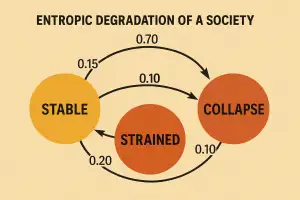 En este contexto, la entropía social puede entenderse como el aumento del esfuerzo necesario para sostener funciones básicas. Una sociedad con baja entropía es capaz de transformar energía en bienestar de forma eficiente y previsible. Por el contrario, una sociedad sometida a perturbaciones externas que rompen sus flujos óptimos experimenta una degradación progresiva de su eficiencia sistémica. Es crucial distinguir entre la entropía que emerge de dinámicas internas y aquella que es inducida externamente mediante mecanismos de coerción.