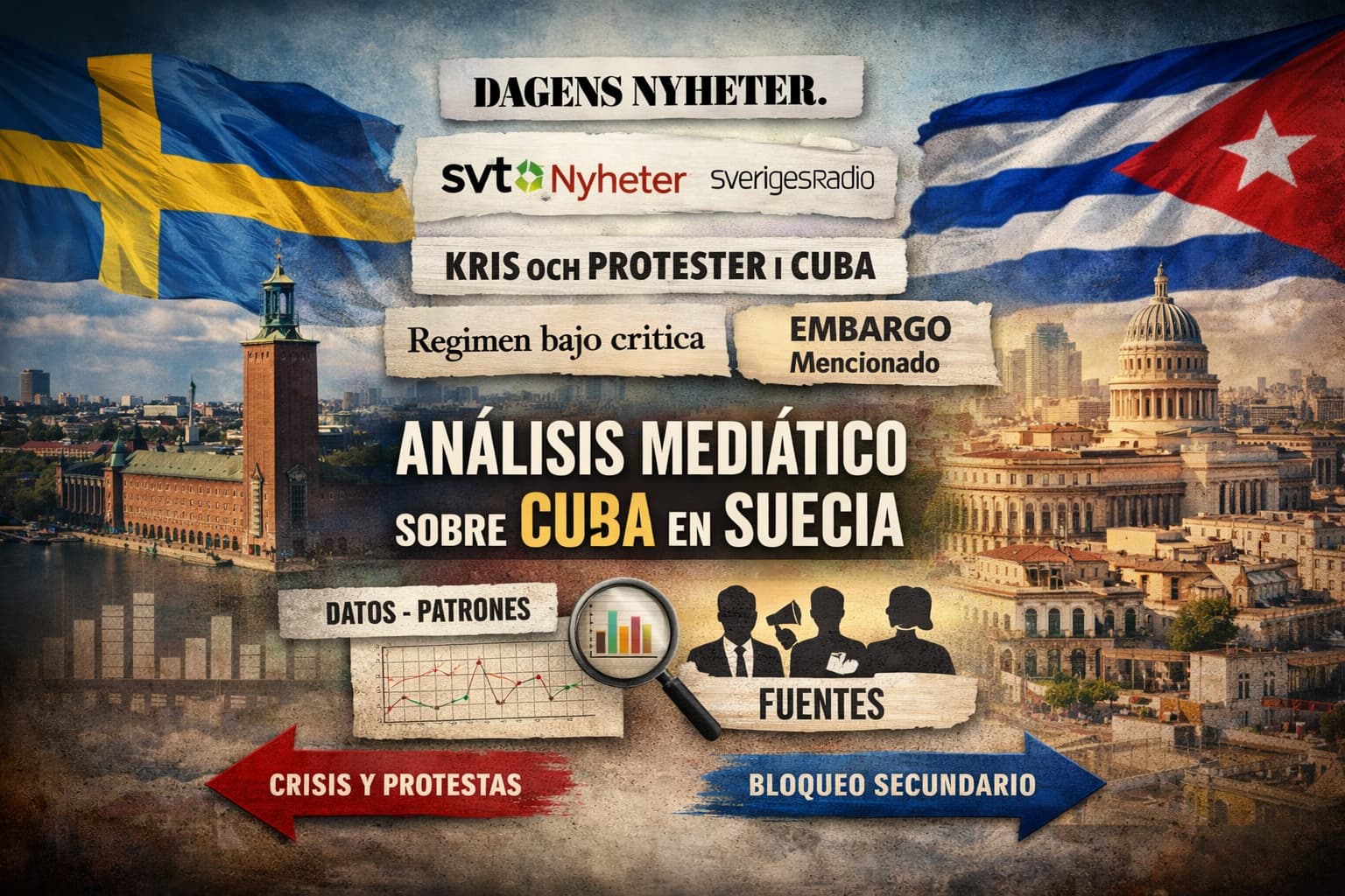 A modo de verificación empírica acotada, una revisión exploratoria de cobertura en medios suecos (incluyendo Dagens Nyheter, SVT y Sveriges Radio) permite identificar patrones consistentes. En una muestra limitada de artículos publicados tras 2021, el encuadre predominante se centra en crítica política, crisis económica y protesta, mientras que el bloqueo estadounidense aparece, en la mayoría de los casos, como referencia secundaria o contextual, sin desarrollo estructural de sus efectos. Asimismo, las fuentes citadas tienden a privilegiar actores opositores, analistas críticos o reportes internacionales, con menor presencia de fuentes institucionales cubanas. Aunque esta muestra no pretende ser representativa del universo total de cobertura, sí resulta consistente con las tendencias de subordinación narrativa previamente descritas.