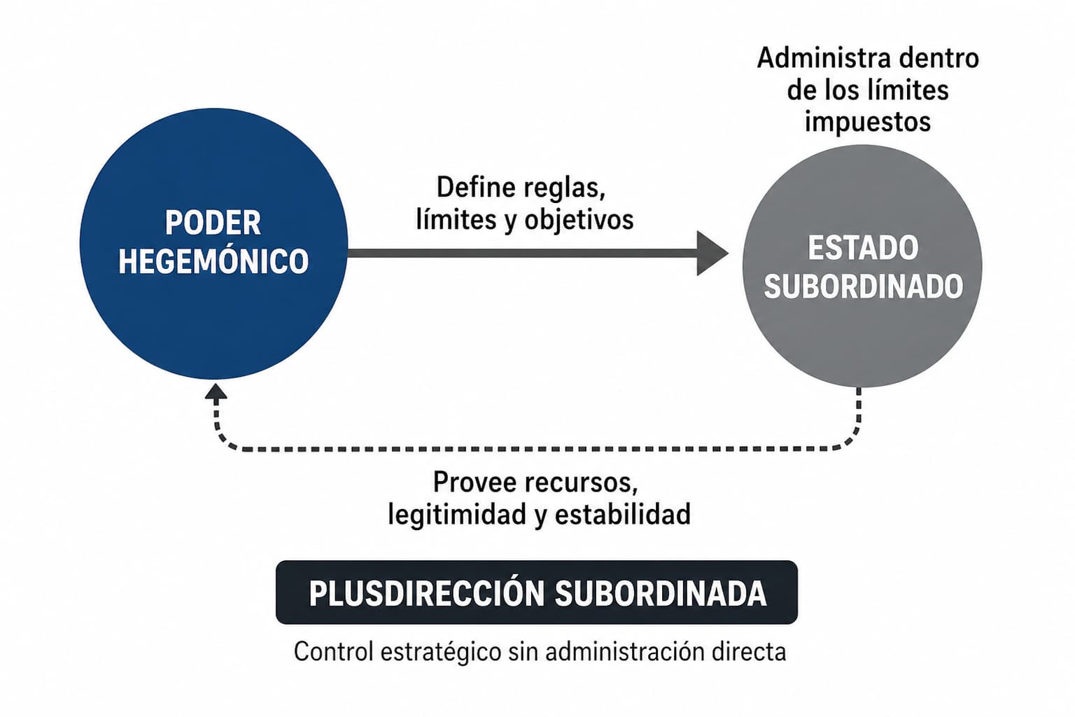 La “plusdirección subordinada” describe una situación en la que un Estado conserva funciones administrativas, pero pierde capacidad de decisión estratégica. En el caso venezolano, la combinación de colapso económico, presión externa y transformación interna sugiere un posible tránsito hacia esta condición, lo que puede interpretarse como una forma de renuncia funcional a la soberanía.